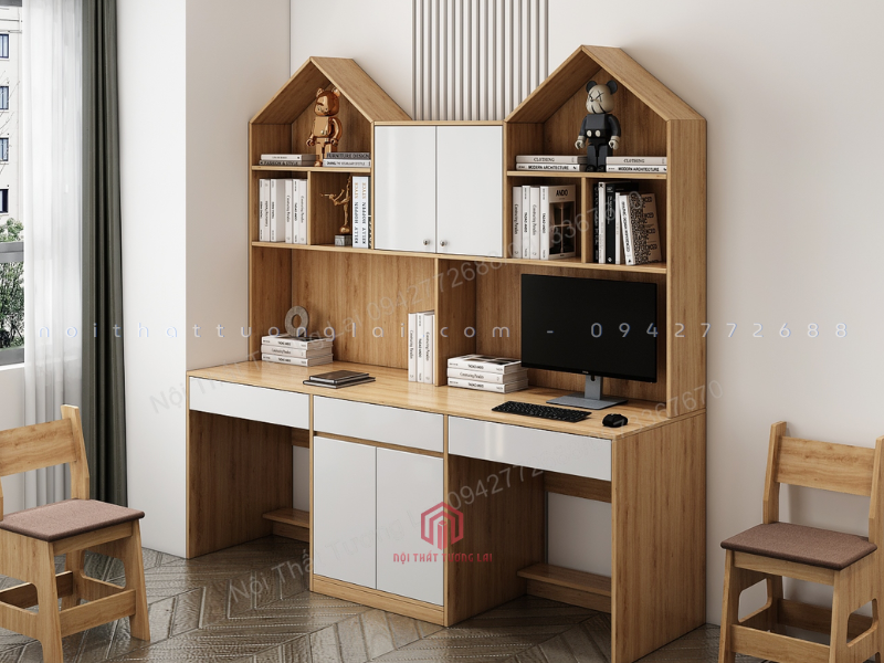 Bàn học đôi BH6805 là mẫu bàn học hiện đại, tiện dụng, được thiết kế dành riêng cho gia đình có hai bé hoặc phòng học chung. Với kiểu dáng sang trọng, chất liệu bền bỉ và hệ giá sách lớn liền bàn, sản phẩm mang lại không gian học tập khoa học – ngăn nắp – thẩm mỹ cao.