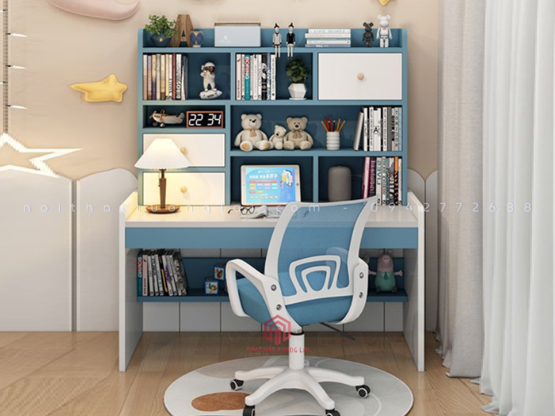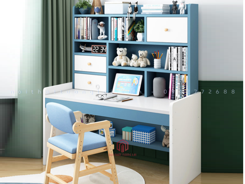 Bàn học liền giá sách BH6863 là lựa chọn hoàn hảo cho góc học tập của trẻ nhờ thiết kế gọn gàng, thông minh và cực kỳ tiện dụng. Sản phẩm được làm từ MDF cốt xanh chống ẩm bền bỉ, an toàn cho sức khỏe và phù hợp với mọi không gian phòng ngủ trẻ em. Hệ giá sách nhiều ngăn giúp bé dễ dàng sắp xếp sách vở, đồ chơi và vật dụng trang trí. Mặt bàn rộng rãi, tạo không gian thoải mái cho việc học tập, đọc sách và sử dụng máy tính bảng. BH6863 có nhiều màu sắc tươi sáng, phù hợp cả bé trai lẫn bé gái.
