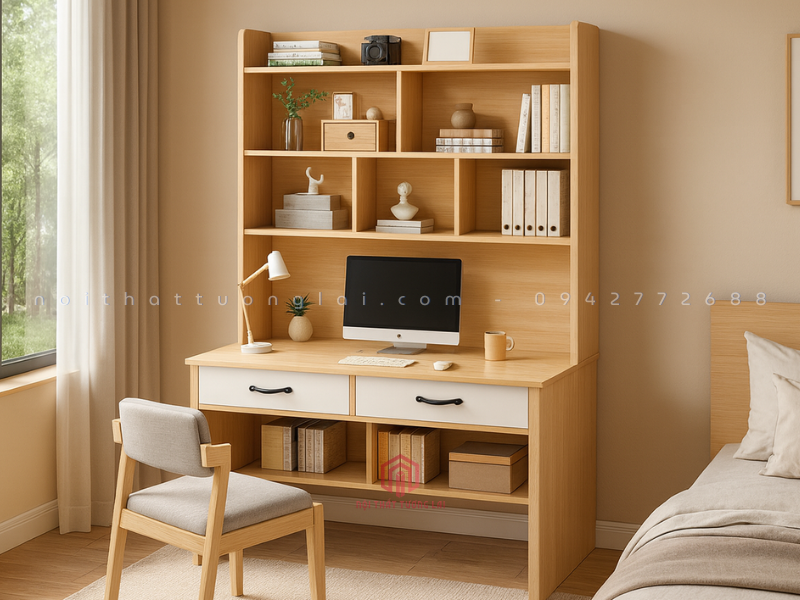 Bàn học sinh kèm giá sách BR6809 là mẫu bàn học hiện đại được thiết kế tối ưu cho học sinh tiểu học – THCS – THPT, giúp không gian học tập luôn gọn gàng, khoa học. Sản phẩm sở hữu hệ giá sách lớn phía trên, nhiều ngăn lưu trữ tiện dụng, mặt bàn rộng thoải mái và chiều cao tiêu chuẩn giúp bé ngồi đúng tư thế. Với phong cách tối giản, màu sắc trang nhã, BR6809 phù hợp cho cả phòng ngủ, phòng học và các không gian gia đình hiện đại. Đây là lựa chọn hoàn hảo dành cho phụ huynh muốn đầu tư một góc học tập đẹp, bền, an toàn cho con.