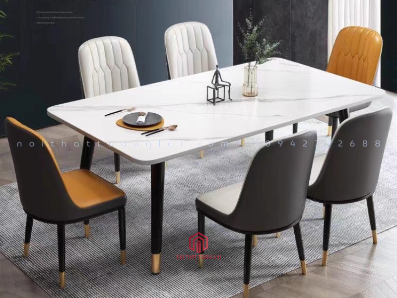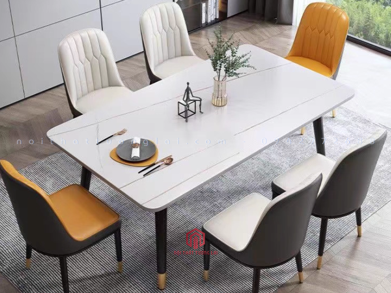 Bộ bàn ăn 6 ghế nhập khẩu BA6802 là giải pháp nội thất phòng ăn hoàn hảo cho các gia đình trẻ và căn hộ chung cư. Sản phẩm không chỉ là nơi dùng bữa mà còn là điểm nhấn sang trọng trong không gian sống. Sự kết hợp giữa bàn ăn mặt đá hiện đại và ghế ăn bọc da cao cấp tạo nên vẻ đẹp tinh tế, khẳng định gu thẩm mỹ của gia chủ. Đây là một trong những mẫu bàn ăn 6 ghế đẹp được săn đón nhất trong năm 2025.