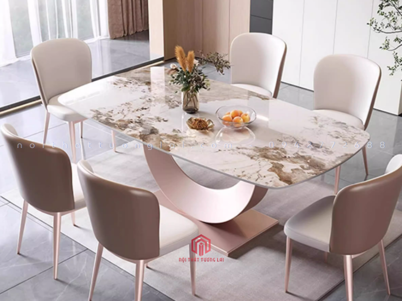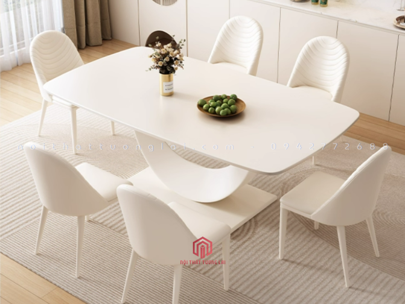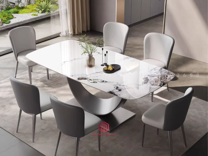 Bộ bàn ăn gia đình sang trọng 6 ghế mặt đá nhập khẩu BA6806 là sự kết hợp hoàn hảo giữa tính năng sử dụng và nghệ thuật thiết kế. Với khả năng phục vụ 6 người ngồi thoải mái, BA6806 là lựa chọn lý tưởng cho các gia đình đông thành viên hoặc thường xuyên tiếp khách. Điểm nhấn trung tâm của bộ sản phẩm chính là chân bàn hình Trăng Khuyết (Crescent) độc đáo và tinh tế, mang đến vẻ đẹp hiện đại và đẳng cấp cho phòng ăn lớn.