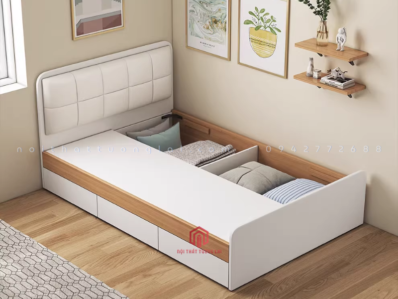 Giường ngủ trẻ em 1m2 đầu bọc đệm GD6812 là mẫu giường hiện đại thiết kế an toàn tuyệt đối cho trẻ nhỏ. Với phần đầu giường bọc đệm êm ái, bo góc cong mềm mại và màu sắc tinh tế, sản phẩm mang đến sự thoải mái – thẩm mỹ – tiện nghi trong cùng một thiết kế.