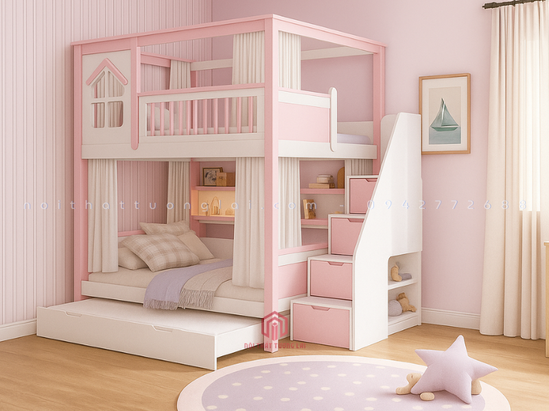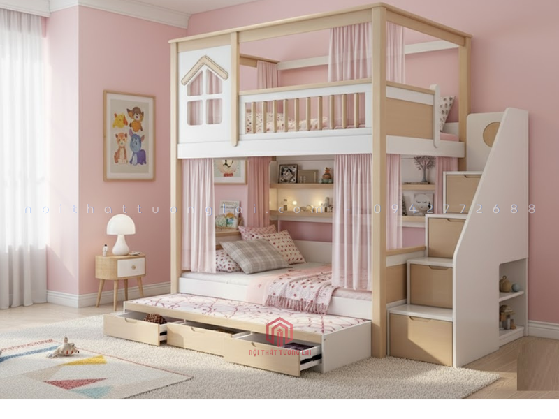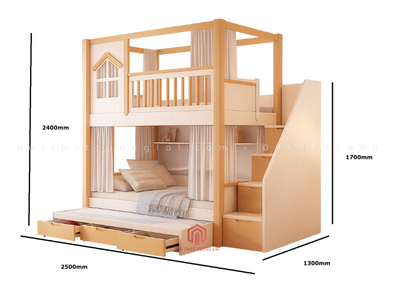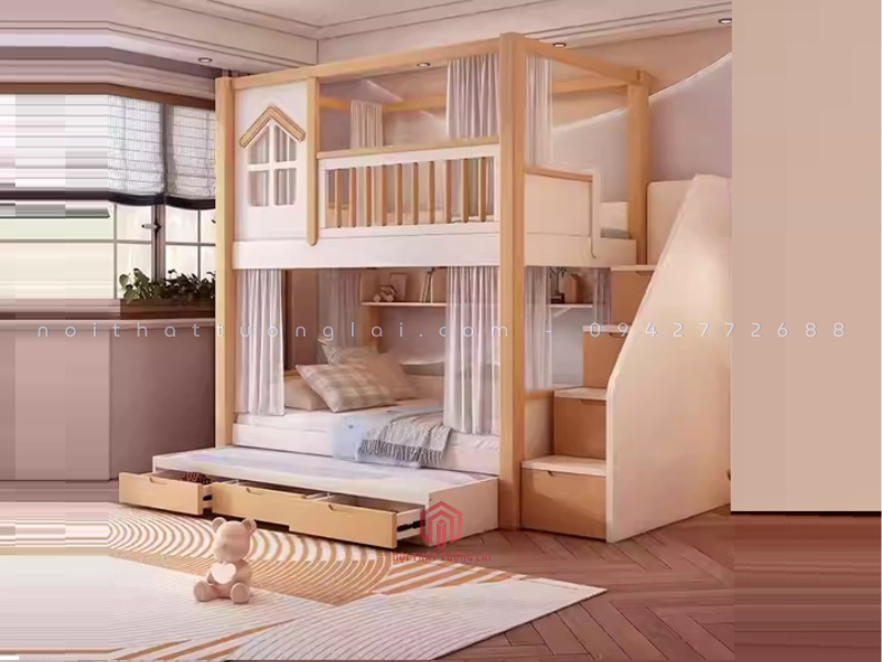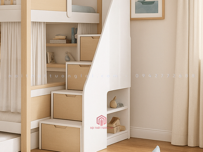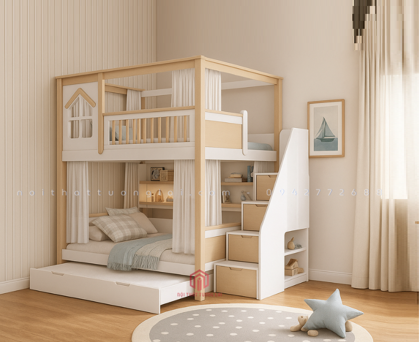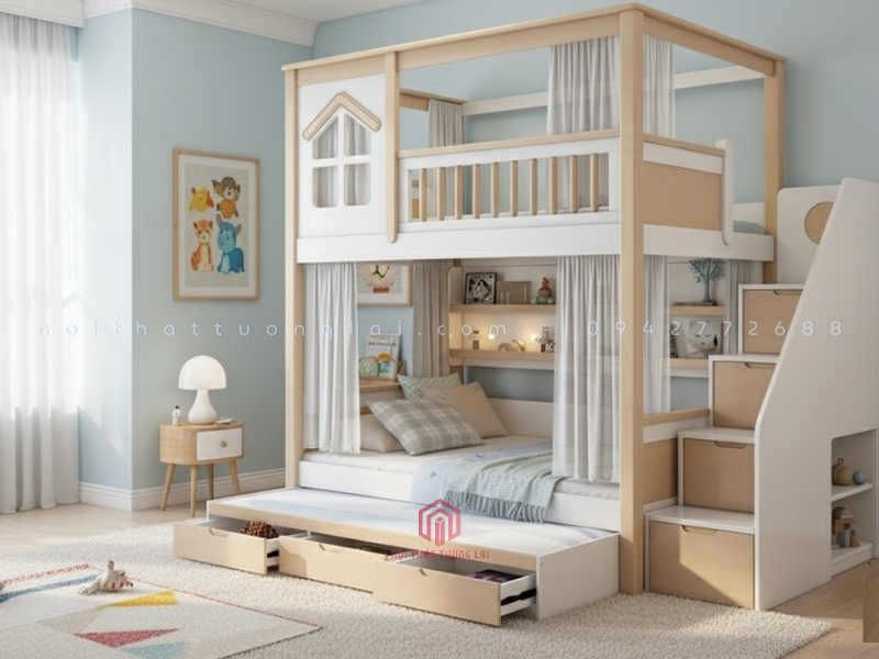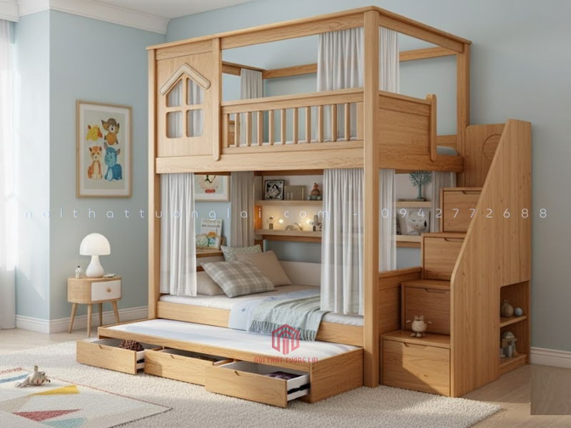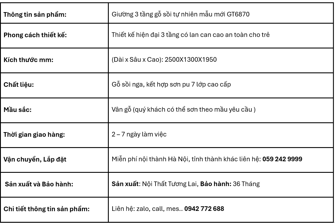 Mẫu giường 3 tầng gỗ sồi tự nhiên GT6870 là thiết kế mới nhất năm 2025 của Nội Thất Tương Lai, mang đến không gian nghỉ ngơi tiện nghi, an toàn và hiện đại cho bé. Với thiết kế thông minh, giường tích hợp hộc kéo, cầu thang và ngăn chứa đồ giúp tối ưu diện tích cho mọi căn phòng.