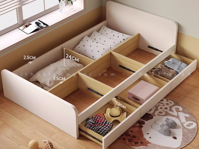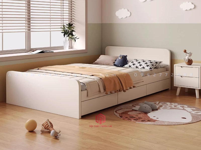 Giường ngủ trẻ em 1m2 hiện đang là lựa chọn hàng đầu của nhiều bố mẹ bởi sự gọn gàng – đa năng – tiết kiệm tối đa diện tích. Với thiết kế thông minh, giường không chỉ đáp ứng nhu cầu ngủ nghỉ mà còn mang đến không gian lưu trữ rộng rãi, giúp căn phòng của bé luôn gọn gàng, thoáng đãng.