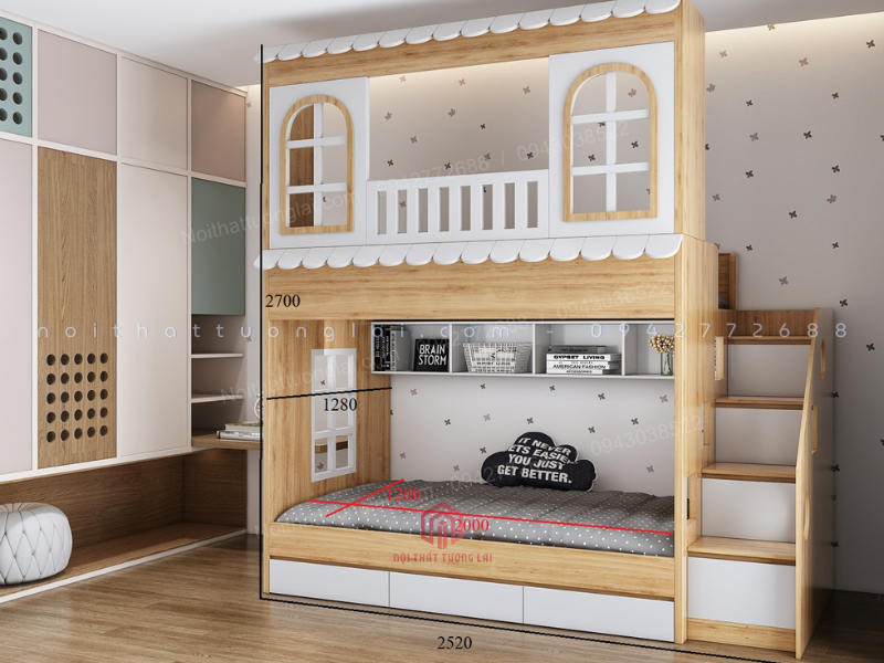 Giường tầng đẹp dành cho bé màu óc chó điểm trắng nổi bật