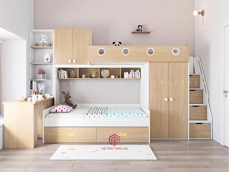 Nếu ba mẹ đang tìm kiếm một giải pháp để tối ưu không gian phòng cho bé, thì giường tầng đơn kết hợp bàn học & tủ quần áo sẽ là một lựa chọn hoàn hảo. Với thiết kế thông minh và tiện dụng, GT6852 đem lại sự tiện nghi khi kết hợp cùng lúc cả không gian học tập & nghỉ nghơi