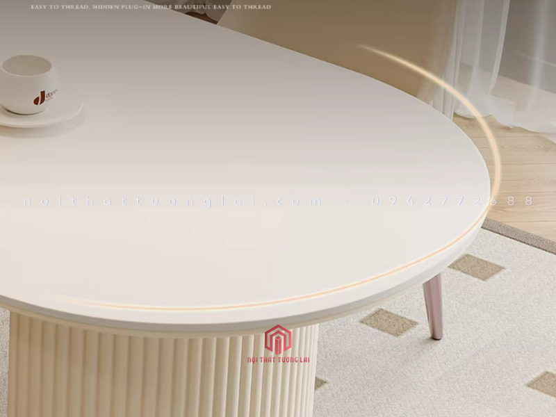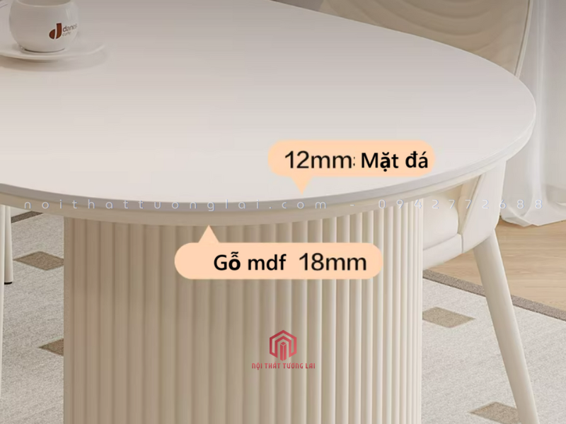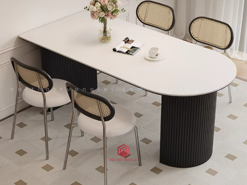 Mặt bàn ăn Japandi BA6810 bo tròn tinh tế, bề mặt phủ đá dày 12mm chống trầy xước và dễ vệ sinh