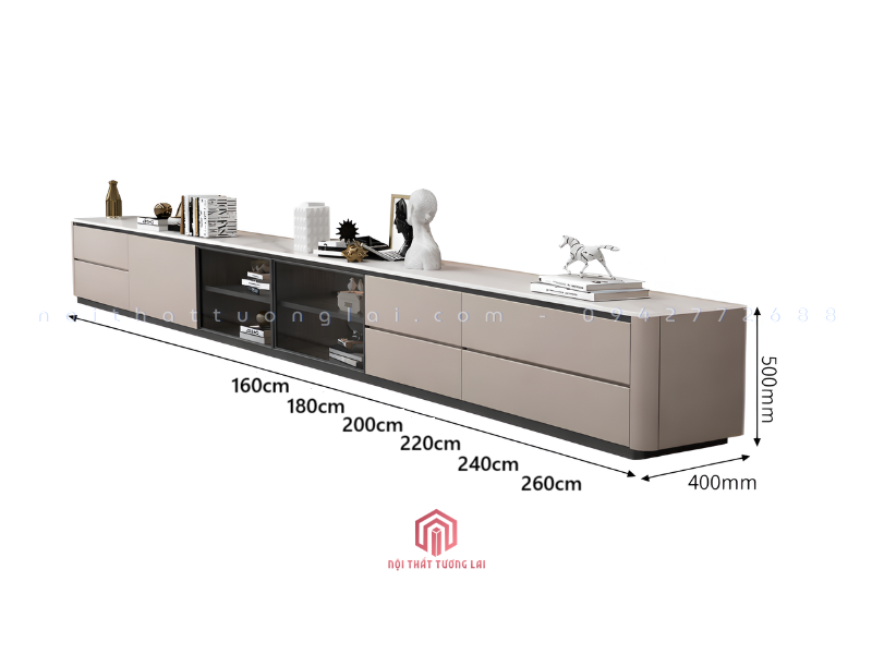 Kệ tivi thiết kế dài từ 1m6 đến 2m6 giúp:
