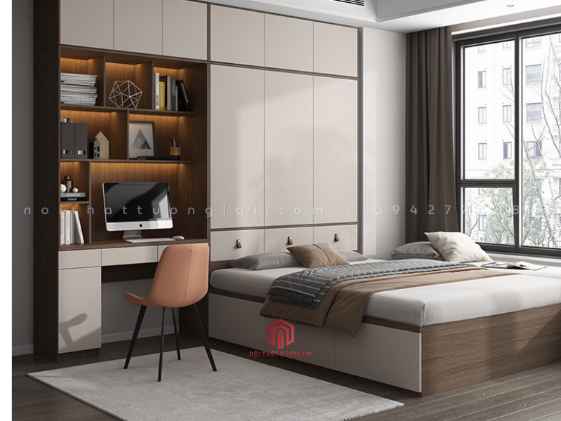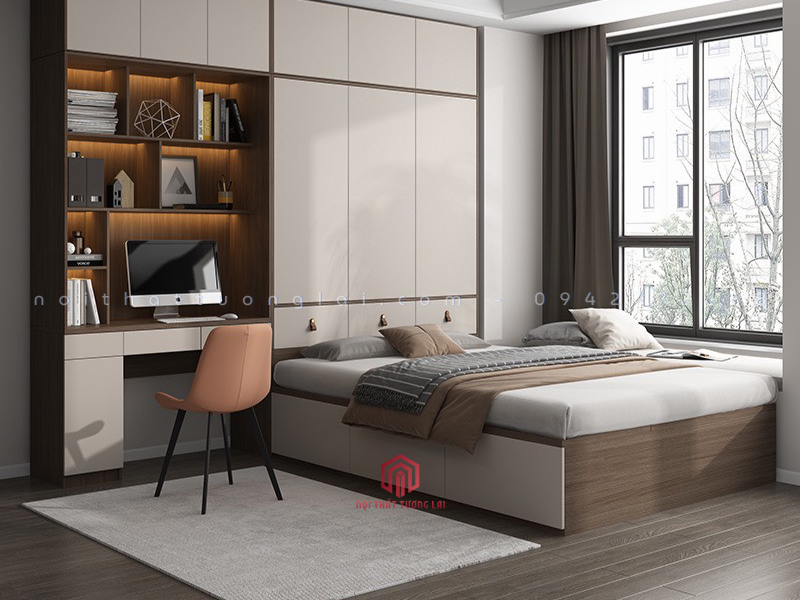 Phòng ngủ bé trai TK6802 được thiết kế theo phong cách hiện đại, tinh gọn và vô cùng tiện nghi. Hệ giường liền tủ đa năng giúp tối ưu diện tích, mang lại không gian ngủ – học – vui chơi khoa học cho bé. Tủ quần áo kịch trần, bàn học liền giá sách và các ngăn chứa đồ lớn giúp căn phòng luôn gọn gàng. Tone màu nâu gỗ – trắng trẻ trung, phù hợp nhiều độ tuổi. Chất liệu MDF lõi xanh chống ẩm an toàn, bền đẹp theo thời gian. Đây là lựa chọn lý tưởng cho các bậc phụ huynh muốn tạo không gian sống chất lượng cho con.