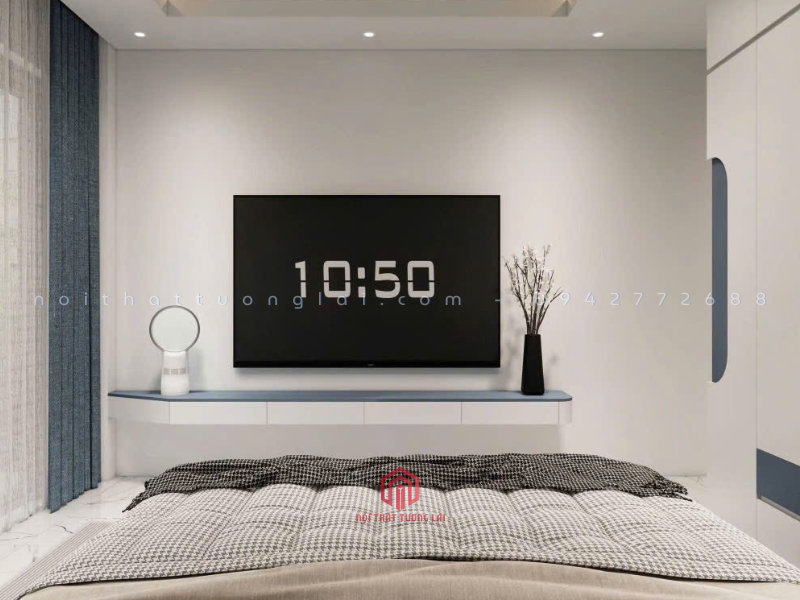 Mẫu phòng ngủ 18m² PN6806 được thiết kế theo phong cách hiện đại, tinh gọn và sang trọng, phù hợp cho các gia đình muốn tối ưu không gian mà vẫn giữ sự tiện nghi. Hệ tủ quần áo kịch trần kết hợp các hộc trang trí bo cong mềm mại, tạo điểm nhấn tinh tế. Giường ngủ thiết kế liền khối chắc chắn, tone màu xanh – ghi mang lại cảm giác thư giãn. Bàn trang điểm nhỏ gọn tích hợp kệ để đồ thông minh, giúp không gian luôn gọn gàng. Sản phẩm sử dụng chất liệu MDF lõi xanh chống ẩm bền bỉ, an toàn và được thi công trọn gói chuẩn kỹ thuật.