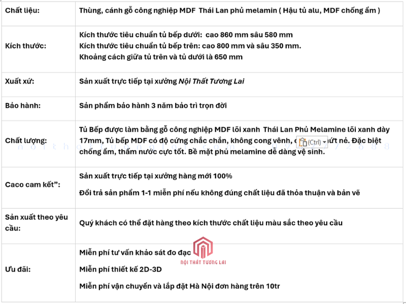 Tủ bếp hiện đại gỗ công nghiệp Thái Lan Phủ melamin chống xước TB6802 là lựa chọn kinh tế và hiệu quả cho những căn hộ hoặc không gian bếp vừa và nhỏ. Sản phẩm nổi bật với sự kết hợp hài hòa giữa chất lượng của gỗ MDF Thái Lan và lớp phủ Melamine chống xước, mang lại độ bền cao và tính thẩm mỹ hiện đại. TB6802 được thiết kế theo bố cục chữ I thẳng tắp, tối ưu hóa diện tích mà vẫn đảm bảo đầy đủ công năng.