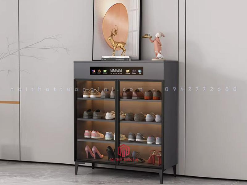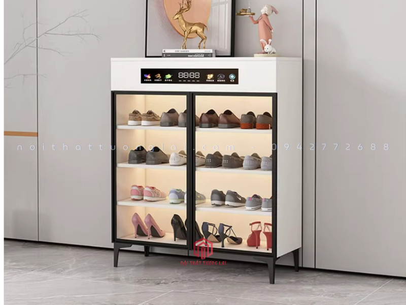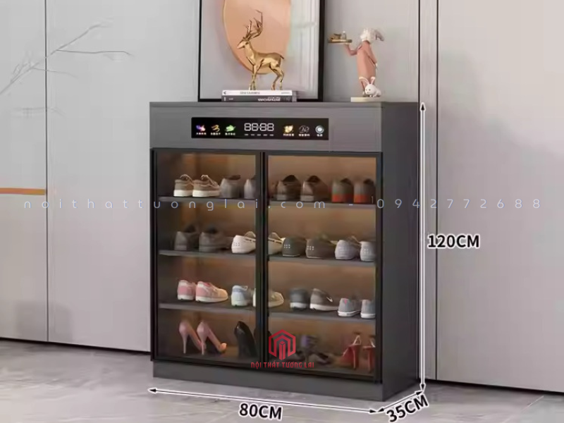 Tên sản phẩm: Tủ đựng giày cánh kính có máy khử trùng, diệt khuẩn mẫu mới 80cm TG6890