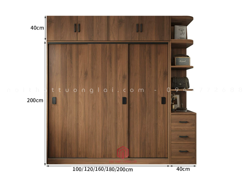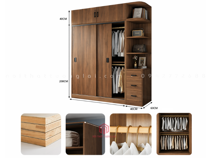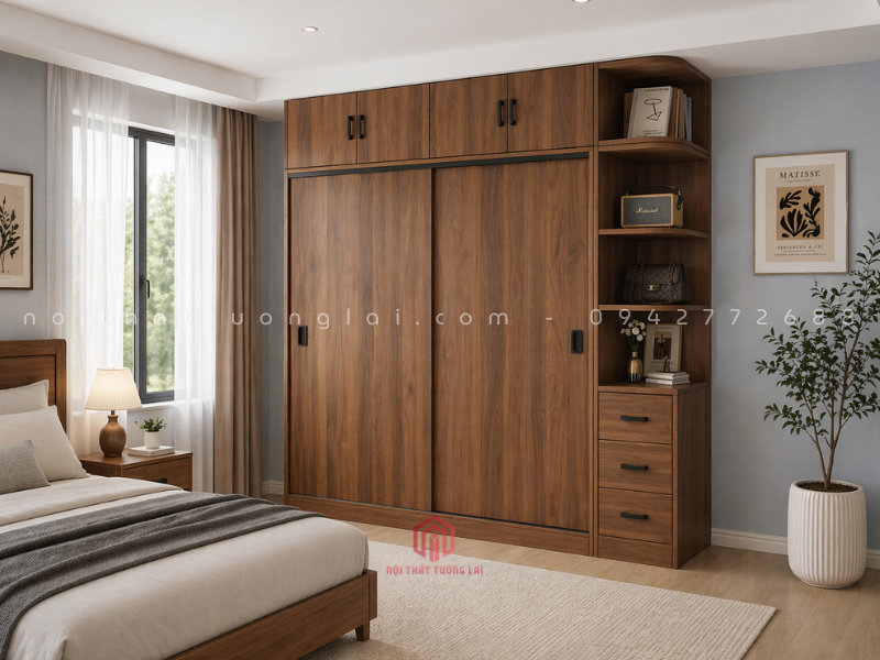 Tủ quần áo cánh lùa màu óc chó hiện đại TA6810
