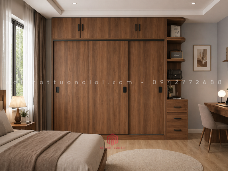 Tủ quần áo cánh lùa màu óc chó hiện đại TA6810 là mẫu tủ ngủ thông minh được thiết kế theo xu hướng nội thất 2026. Gam màu óc chó sang trọng kết hợp cánh lùa tiết kiệm diện tích, phù hợp căn hộ chung cư, nhà phố và phòng ngủ hiện đại.