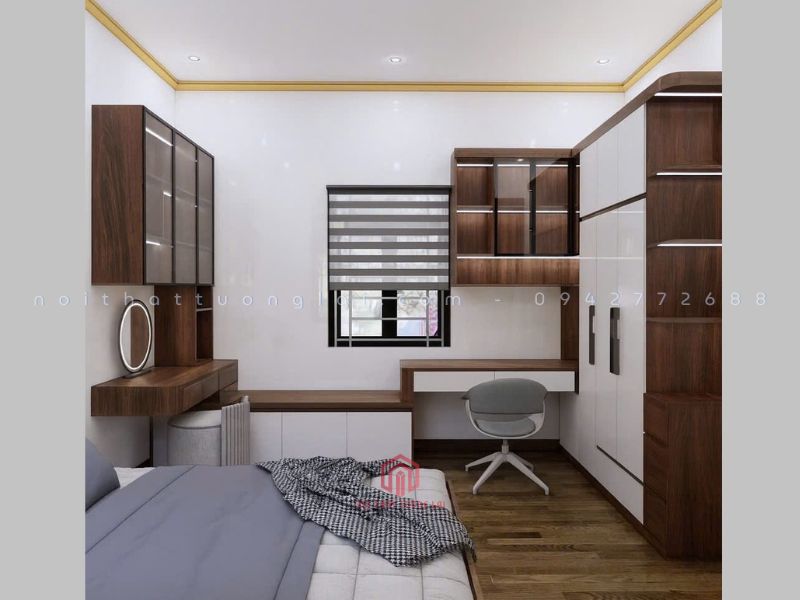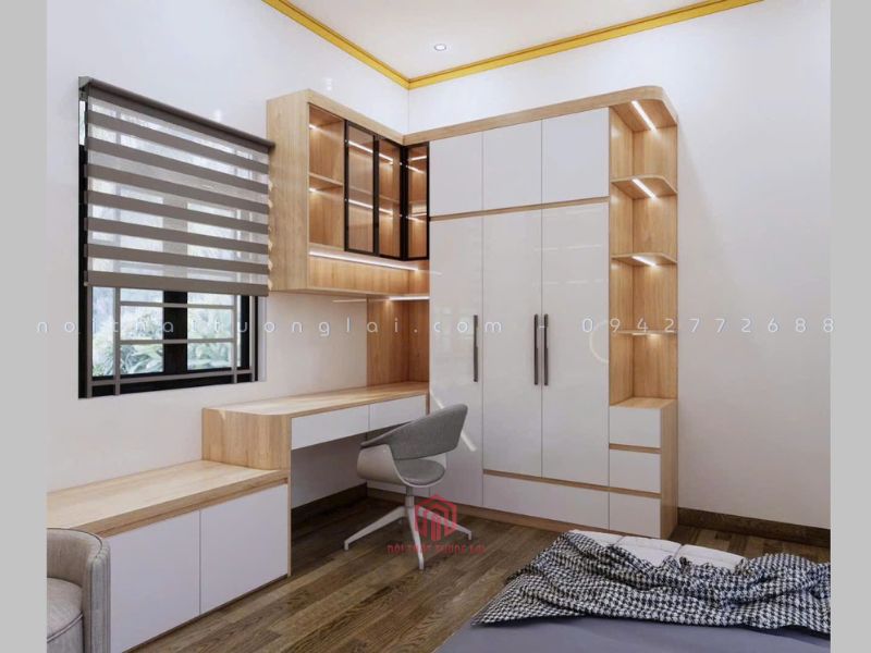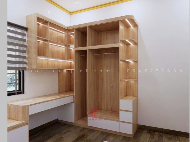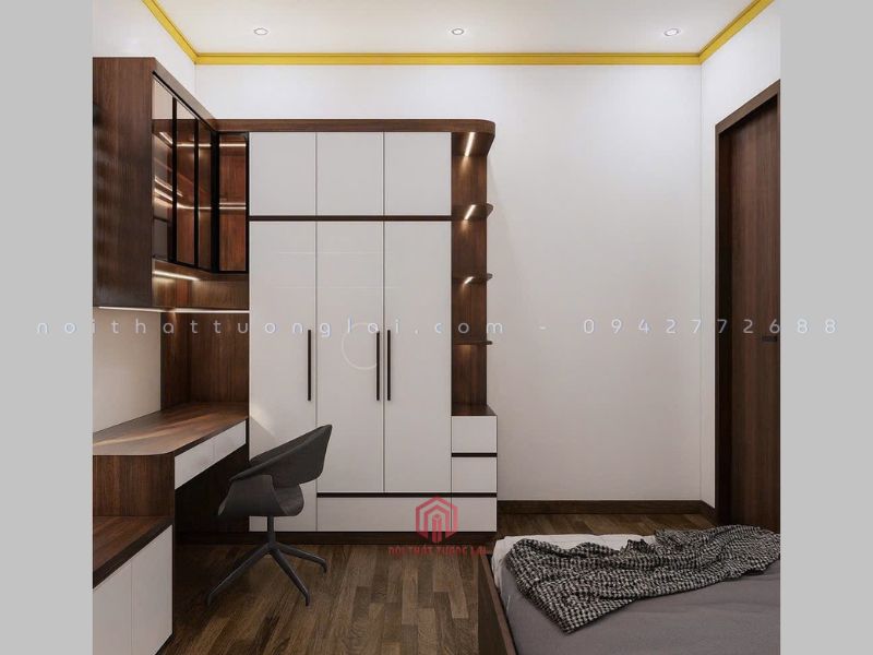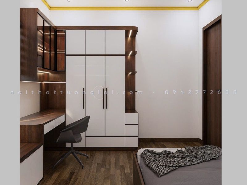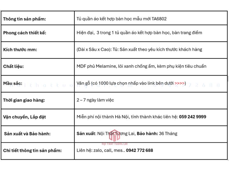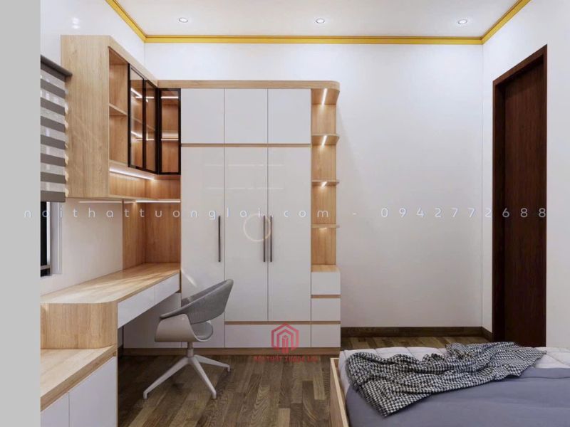 Tủ quần áo kết hợp bàn học mẫu mới TA6802 mang đến giải pháp nội thất thông minh, tối ưu không gian sống. Thiết kế hiện đại, tinh tế với tone màu vân gỗ – trắng hài hòa, kết hợp hệ đèn LED trang trí sang trọng. Phù hợp cho phòng ngủ nhỏ, căn hộ hiện đại và không gian làm việc tại nhà.